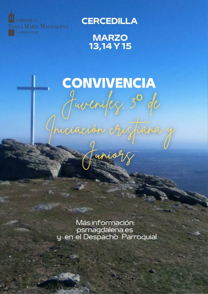 La Parroquia Santa María Magdalena de Ciempozuelos organiza una convivencia juvenil dirigida a los grupos de 3º de Iniciación Cristiana, Juniors y Juveniles, que tendrá lugar los días 13, 14 y 15 de marzo en Cercedilla.